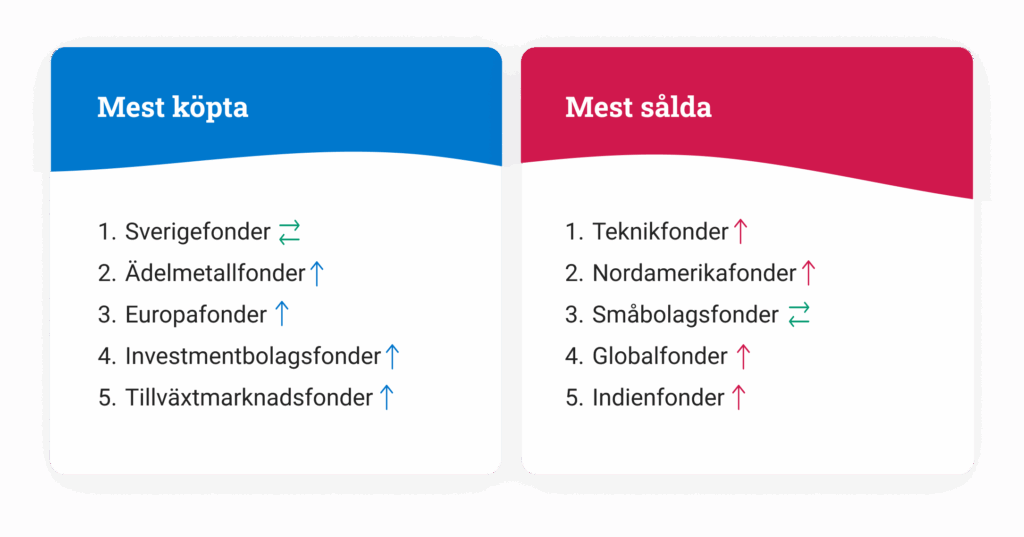 Trenden från förra året håller i sig och fondspararna fortsätter att pumpa in pengar i svenska indexfonder samt öka i Europafonder. Sverigefonder står för närmare hälften av månadens köp. Sannolikt är det en kombination av att man vill ifrån USA men också att man ser hemmaplan som ett starkare alternativ.