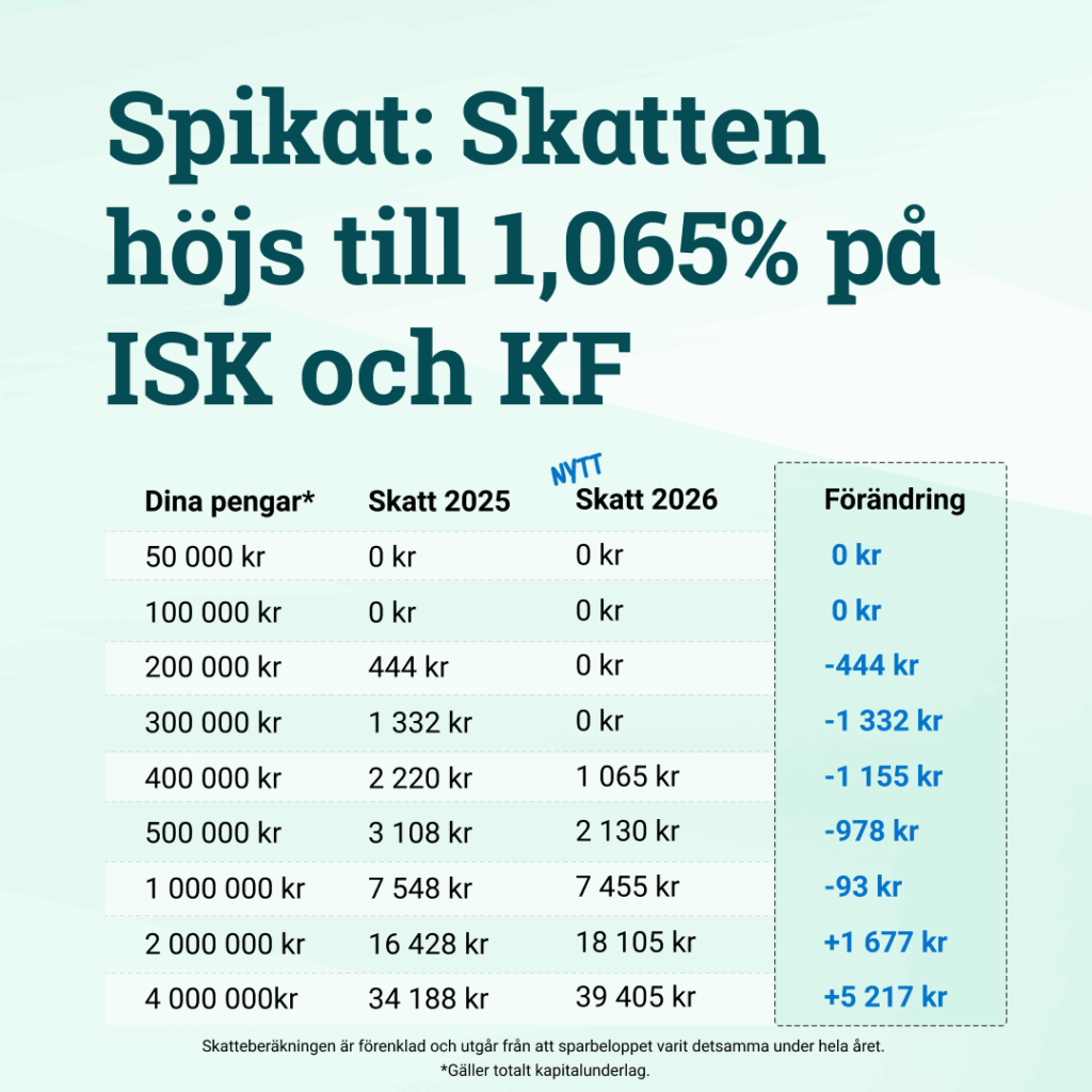 Så blir skatten på ISK och KF 2026 – skattefritt upp till 300 000 kronor