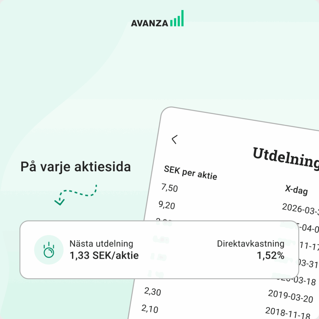 Om du är nyfiken på ett specifikt bolag så kan du söka på det i app eller sajt och klicka på utdelningsmodulen för att få koll på bolaget utdelning.